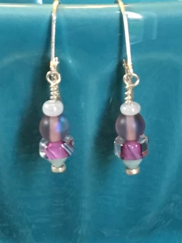 Dainty pink earrings so sweet they'll give you a toothache. Featuring David Christensen Cane beads, accented with opaque, miniature Swarovski crystals. Maybe such an cutie statement, would consider for your daughter.